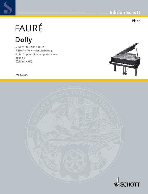 Die Dolly Suite ist eine Sammlung von Klanggeschenken, mit denen Fauré die kleine Dolly (Hélène Bardac, Tochter der Mezzosopranistin Emma Bardac) zu besonderen Anlässen bedachte. Kindliche Szenen wie der Ketty-Valse, Le jardin de Dolly und Tendresse werden musikalisch umgesetzt. Das Phänomen der Kindheit wurde im 19. Jahrhundert auf vielfältige Weise vertont. Faurés Sammlung Dolly Suite reiht sich ein in eine Vielzahl von Kinderkompositionen wie Schumanns Kinderszenen, Bizets Jeux d'enfants oder Debussys Children's Corner - Kompositionen, die sich mit der Kindheit als Ideal beschäftigen, bei denen es sich jedoch keinesfalls um leichte, für Kinder spielbare Werke handelt. Anders bei Fauré: Die Dolly Suite vereint das künstlerische Interesse und eine kindgerechte Umsetzung. Die Stücke sind für Lehrer und Schüler oder zwei Schüler unterschiedlichen Leistungsstandes spielbar. Der Primo-Part ist nach ein bis zwei Unterrichtsjahren gut zu bewältigen und bietet mit klanglich abwechslungsreichen Charakterstücken einen unterhaltsamen Einstieg in das vierhändige Klavierspiel.