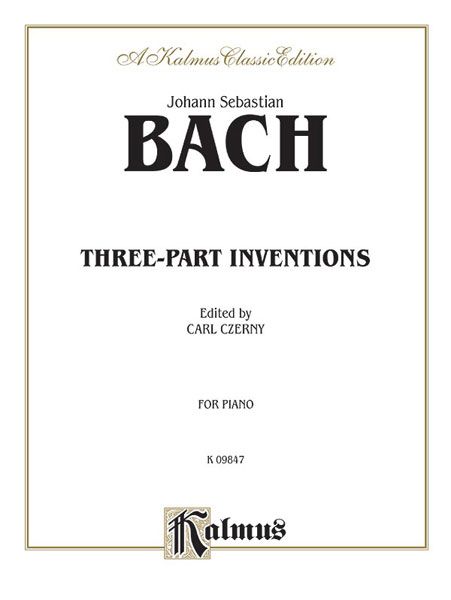 The edition of Johan Sebastian Bach's fifteen 3-Part Inventions, edited by Carl Czerny, contains editorial additions, including dynamics, fingering and tempo indications. 31 pages.