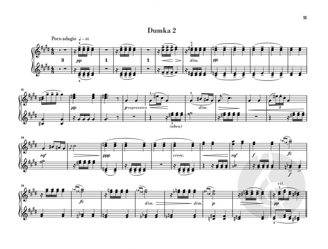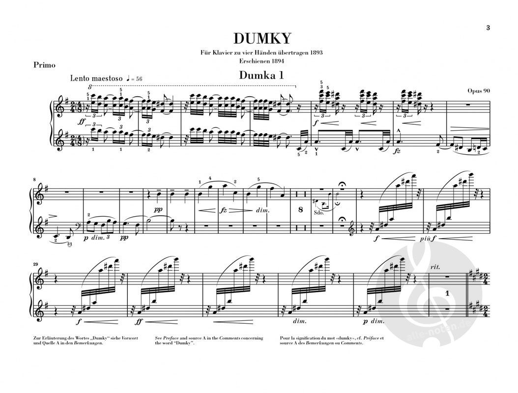 Eine gute Musik muss auch auf dem Klavier gut klingen' - das war Dvo?áks Überzeugung. Daher erklärte er sich gerne bereit, auf Wunsch seines Verlegers zusätzlich zur Originalfassung des Dumky-Trios einen vierhändigen Klavierauszug anzufertigen. Die Klavierfassung sollte nicht nur die musikalische Substanz wiedergeben, sondern sich auch die klanglichen Möglichkeiten dieser Besetzung zunutze machen - nach Dvo?áks Worten eine 'schwierige Aufgabe, die allein ich zu übertragen imstande bin'. Er hat sie in der Tat bravourös gelöst: Aus dem Trio-Original wurde ein eigenständiges Werk, das in Begleitfiguren, Dynamik und Artikulation dem spezifischen Klavierklang Rechnung trägt. Außerdem ist es gut spielbar - eine Freude für jedes Klavier-Duo! (Das originale Trio findet sich unter der Bestellnummer HN799 in unserem Katalog..