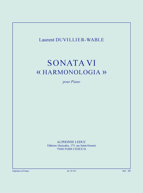 Sonata vi 'harmonologia' (28') pour piano. Par Duvillier-Wable aux éditions Leduc. Partition / Livre de chansons pour Piano