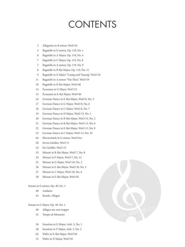 44 bagatelles, German dances, ländler, minuets, sonatinas, and more.