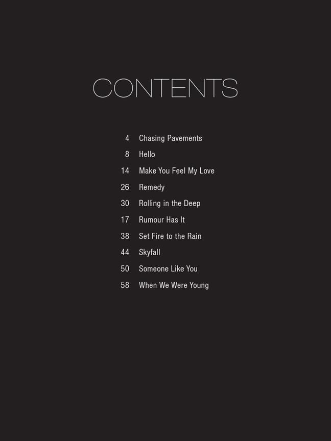 10 Songs der beliebten, britischen Sängerin Adele in einfachen Klavierarrangements mit professionellen Demo- und Begleittracks.