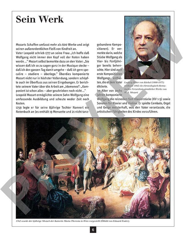 In der Reihe Komponisten zum Kennenlernen werden Werke berühmter Meister in leichten Klavierbearbeitungen sowie Originalkompositionen für Klavier vorgestellt. Ein kurzer Abriss der Lebensgeschichte mit farbigen zeitgenössischen Abbildungen sowie eine Übersicht der wichtigsten Werke erleichtern den Zugang zum jeweiligen Komponisten. Hobbypianisten und jugendliche Klavierschüler finden auf diese Weise einen anschaulichen Streifzug durch Leben und Werk bedeutender Komponisten.