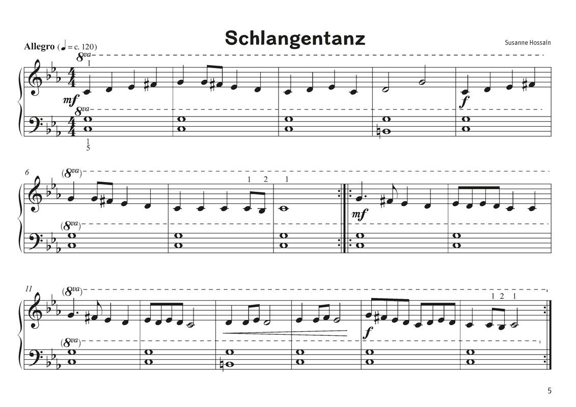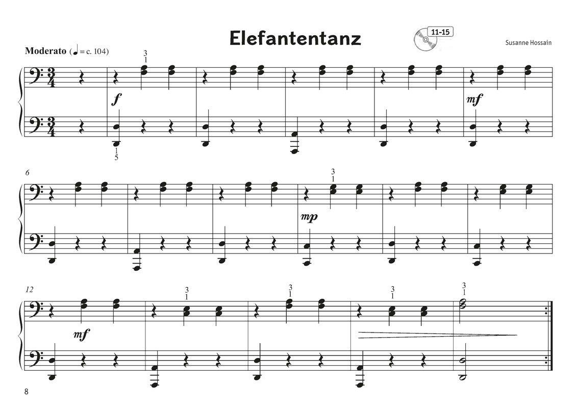 Die vorliegende Sammlung von 18 ansprechenden und etwas orientalisch klingenden vierhändigen Klavierstücken ist für beide Spieler so leicht gesetzt, dass bereits Anfänger Erfahrungen im gemeinsamen Spielen sammeln können. Die Stücke sind kurz gehalten und die Melodien gehen leicht 'ins Ohr'. Wer noch nicht so gut Noten lesen kann, wird die Stücke sehr schnell ohne viel Mühe auswendig spielen können. Durch das gemeinsame Spielen von Anfang an übt jeder der beiden Spieler sein Rhythmus- und Taktgefühl auf eine Weise, die besonders viel Spaß macht. Nicht nur junge Spieler, sondern auch erwachsene Anfänger werden viel Freude an den Stücken haben. 'Eine märchenhafte Reise am Klavier' kann als sinnvolle Ergänzung zu jeder klassischen Klavierschule sowie als willkommene Abwechslung eingesetzt werden. Der angebotene Download dient als Hörbeispiel und praktische Lernhilfe. Es besteht die Möglichkeit auch ohne den jeweiligen Spielpartner zu üben.