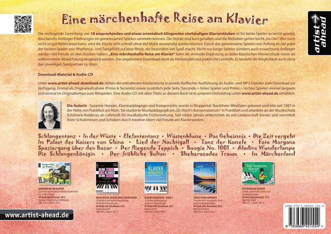Unter artist-ahead-download.de stehen die enthaltenen Klavierstücke als Audio- und MP3-Dateien zum Download zur Verfügung. Eine Audio-CD mit allen Titeln zu diesem Buch ist in unserem Onlineshop unter artist-ahead.de erhältlich.