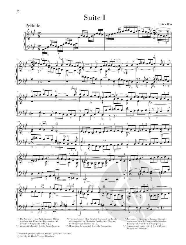 Auch wenn wir kein autographes Quellenmaterial kennen, ist der Notentext durch mehrere zeitgenössische Abschriften außergewöhnlich gut und zuverlässig überliefert. Authentische Varianten, vor allem zur Ornamentik, werden in der revidierten Urtextausgabe von Ullrich Scheideler mustergültig untersucht, dokumentiert und für den Spieler direkt im Notentext zugänglich gemacht. Mit Ekaterina Derzhavina hat diese Neuausgabe eine weitere Bach-Spezialistin an Bord, deren wohldurchdachter Fingersatz sicher durch Bachs "englischen" Suitenkosmos leitet.