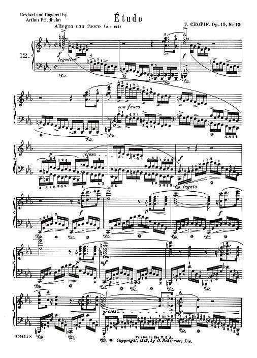 Dedicated to Franz Liszt, this Opus comprising 12 Etudes was written during the period of 1829-32. No. 12 is a study in arpeggios, famously nicknamed Revolutionary Study, and the mood of this piece is more sombre andagitated, though there is some minor resemblance to the soft and graceful arpeggios of first étude in the Op. 10 set.