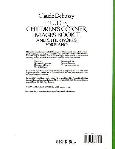 This volume contains several of Debussy's best known and most-admired compositions, including some of his most brilliant works for piano: the technically challenging 'Etudes', the witty and appealing 'Children's Corner' and the sparkling 'Images, Book II' as well as other intriguing, lesser-known works. Pianists will enjoy the extraordinary diversity of these pieces and their rare, often surprising musical effects. All of the works included have been reprinted from authoritative French editions.