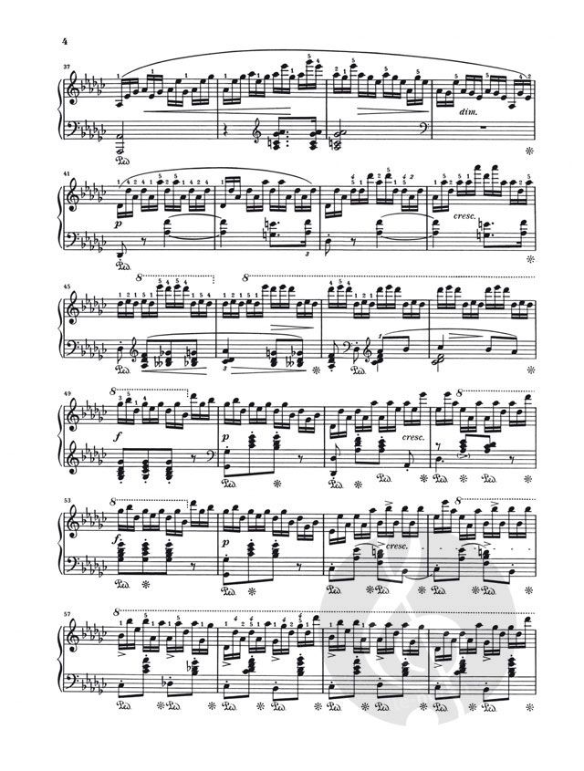 Diese virtuose Studie hat von den Pianisten den Beinamen 'Schwarze-Tasten-Etüde' erhalten, denn bis auf ein einziges f in T. 66 berührt die rechte Hand in diesem Stück keine einzige weiße Taste … Dies verleiht der Harmonik einen pentatonischen, fast debussyhaften Charakter und hat sicher zu ihrer großen Beliebtheit beigetragen. Wer sich an den Gesamtband der Chopin'schen Etüden (HN 124) noch nicht heranwagt, ist mit dieser Urtext-Einzelausgabe bestens bedient.