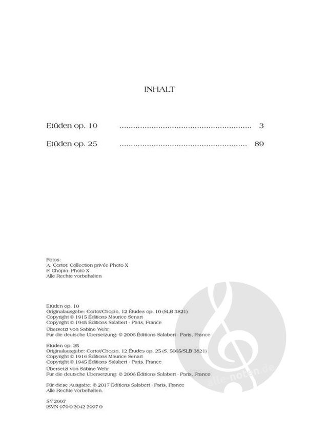 All the corpus of Chopin's STUDIES (Op. 10 and Op. 25) in one volume, with commentary from Alfred Cortot. For each piece Cortot suggests how to solve difficulties, including additional fingering.