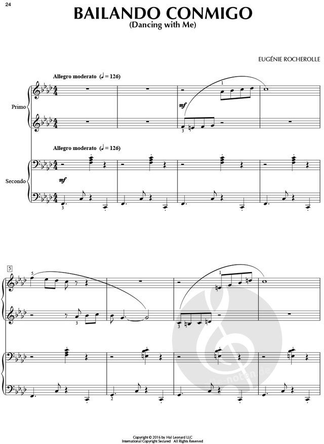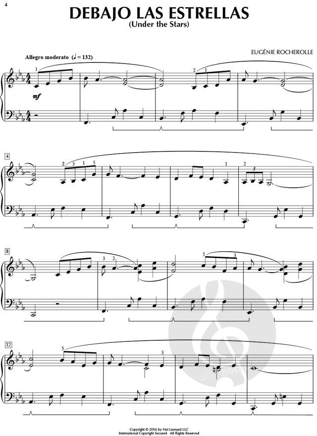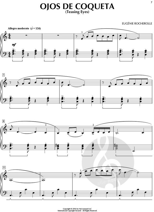 Features 6 original piano solos (and a bonus piano duet!) that were influenced by the famous Argentinian tango. The pieces are full of exotic flair, and the exciting rhythms will motivate and inspire! Includes online audio recordings by Ms. Rocherolle. Titles: Bailando Conmigo (Dancing with Me) · Debajo las Estrellas (Under the Stars) · Ojos de Coqueta (Teasing Eyes) · Promesa de Amor (Promise of Love) · Suenos de Ti (Dreams of You) · Suspiros (Longings) · Tango Caprichoso (Tango Fancy)
