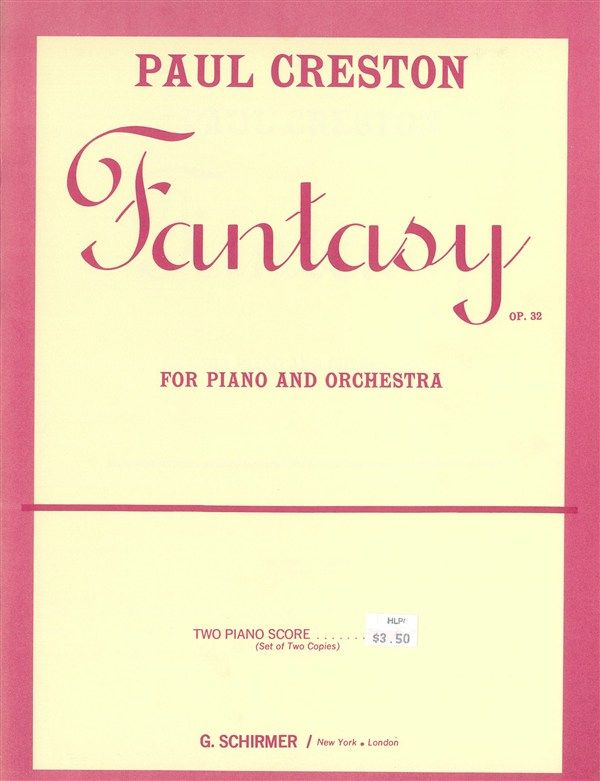 Paul Creston's Fantasy for Piano and Orchestra is here arranged for two pianos. Two copies provided.