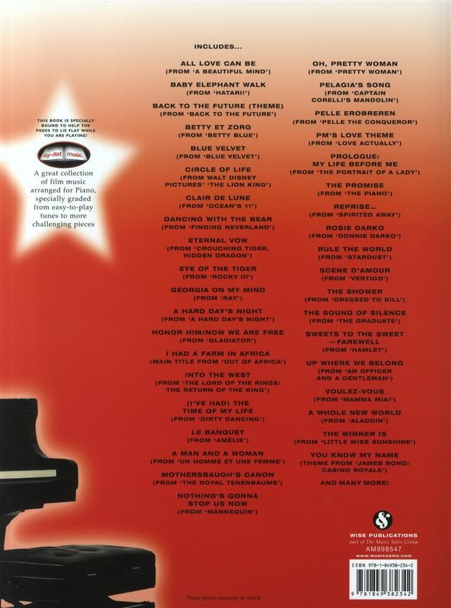 Play your favourite pieces from 50 major movies with Film Themes For Solo Piano. Featuring fanstastic music from cinema classics such as Pride and Prejudice, Miss Potter, The Chronicles of Narnia, King Kong and many more, this album is guaranteed to keep any movie music lover entertained.