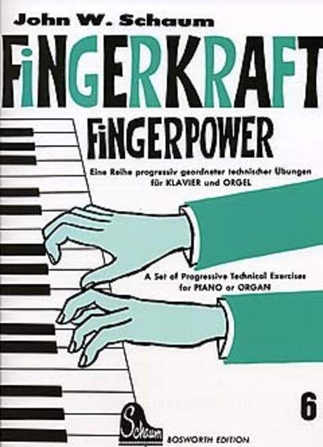 Die Fingerkraft-Übungen von J. W. Schaum befassen sich mit der technischen Fertigkeiten beider Hände, die Entwicklung der musikalischen Phrase, die rhythmischen Verschiedenheiten und die Anschlagtechnik.