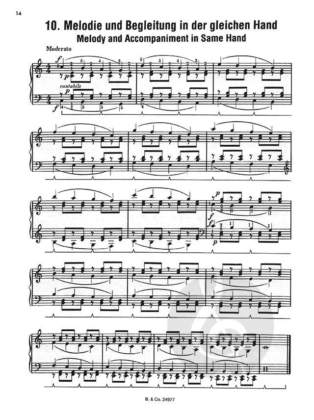 Begleittext zweisprachig Deutsch / Englisch. Großes Notenbild (max. vier Doppelsysteme pro Seite).