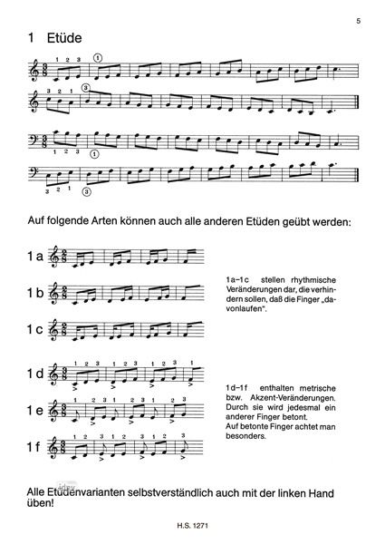 Übungsstücke für eine Hand ohne gegebenen Fingersatz