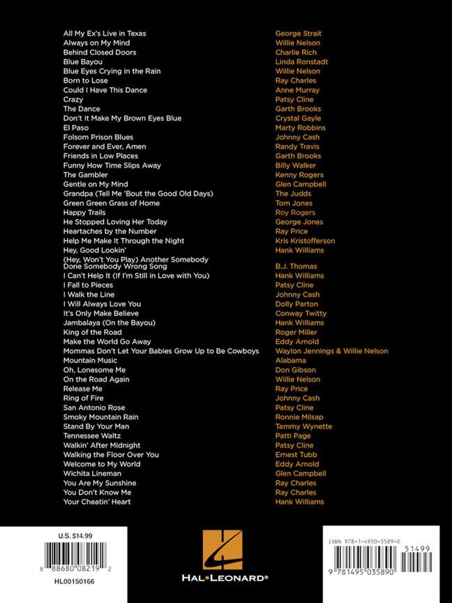 If you've learned enough piano to feel comfortable picking up your first songbook and you love country music, this collection is for you! Arranged at an easier level so beginners can play 50 quintessential country classics and sound great
