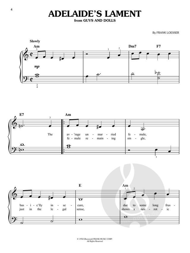 Diese essentielle Sammlung enthält 50 leichte Bearbeitungen von Broadway-Klassikern aus Hit-Shows wie Chicago, Dear Evan Hansen, Godspell, Hadestown, Hairspray, Hamilton, Jagged Little Pill, Les Miserables, The Lion King, My Fair Lady, Newsies, Sound of Music, West Side Story, Wicked und mehr!