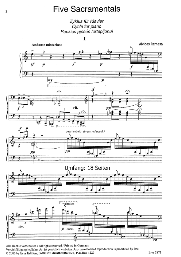 Zyklus für Klavier. Musik aus Litauen.