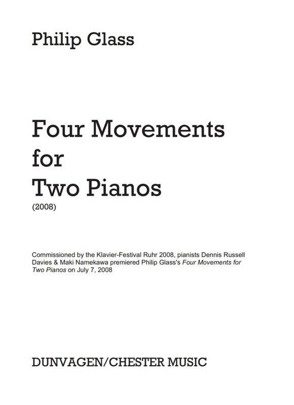 Commissioned by the Klavier-Festival Ruhr 2008, pianists Dennis Russell Davies & Maki Namekawa premiered Philip Glass's Four Movements for Two Pianos on July 7, 2008.