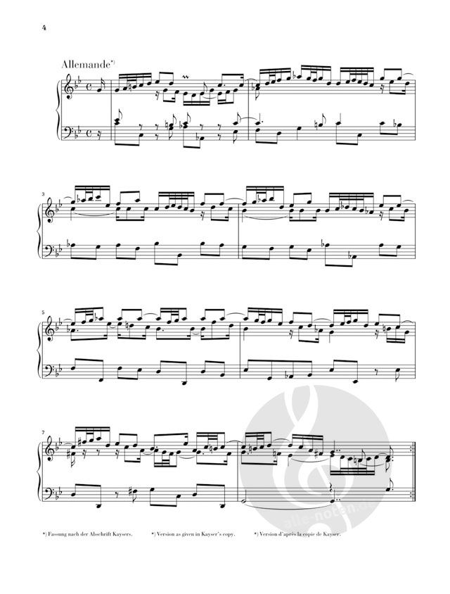 Bachs Französische Suiten zählen zu seinen beliebtesten Klavierwerken und werden auch sehr gerne im Unterricht eingesetzt. Dies war schon zur Zeit ihrer Entstehung der Fall, so dass wir heute eine kaum überschaubare Zahl an Abschriften aus Bachs Schülerkreis kennen, die viele vermutlich authentische Varianten überliefern. Der Herausgeber Ullrich Scheideler stellt die komplizierte Quellenlage in dieser revidierten Henle-Urtextausgabe in mustergültiger Klarheit dar. Die Suite II c-moll BWV 813 ist dem Gesamtband HN593 entnommen und eignet sich als handliche und günstige Einzelausgabe vorzüglich für den Unterricht. Dazu trägt nicht nur der hilfreiche Fingersatz von Michael Schneidt, sondern auch der Umgang mit den Ornamenten bei: Aus den Abschriften werden zusätzliche Zeichen in den Notentext übernommen und das Vorwort erläutert die Ausführung, so dass diese Urtextausgabe zugleich eine ausgezeichnete Einführung in die barocke Verzierungspraxis bietet. Ein weiterer Pluspunkt der Ausgabe: Interessante Abweichungen der verschiedenen Quellen sind leicht zugänglich in Fußnoten wiedergegeben, Allemande und Courante werden sogar in zwei verschiedenen Fassungen dargeboten. Summa summarum: Ein idealer Einstieg in die Bach'sche Suitenwelt!