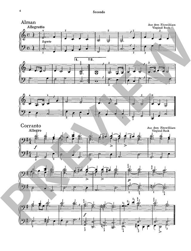 The 'Festive Dances' are intended as a continuation of the book 'Let's Play Duets'. Progress continues without exceeding the range of the lower grades. The lively melodies of the seventeenth-century European dance-forms offered the author a treasure trove of material from which to create these duets. the parts are written in such a way as to avoid the dissatisfaction that the pupil generally feels when practising either the pimo or secondo part in isolation. Both parts are of the same difficulty and the pupil may play either the upper or lower part.