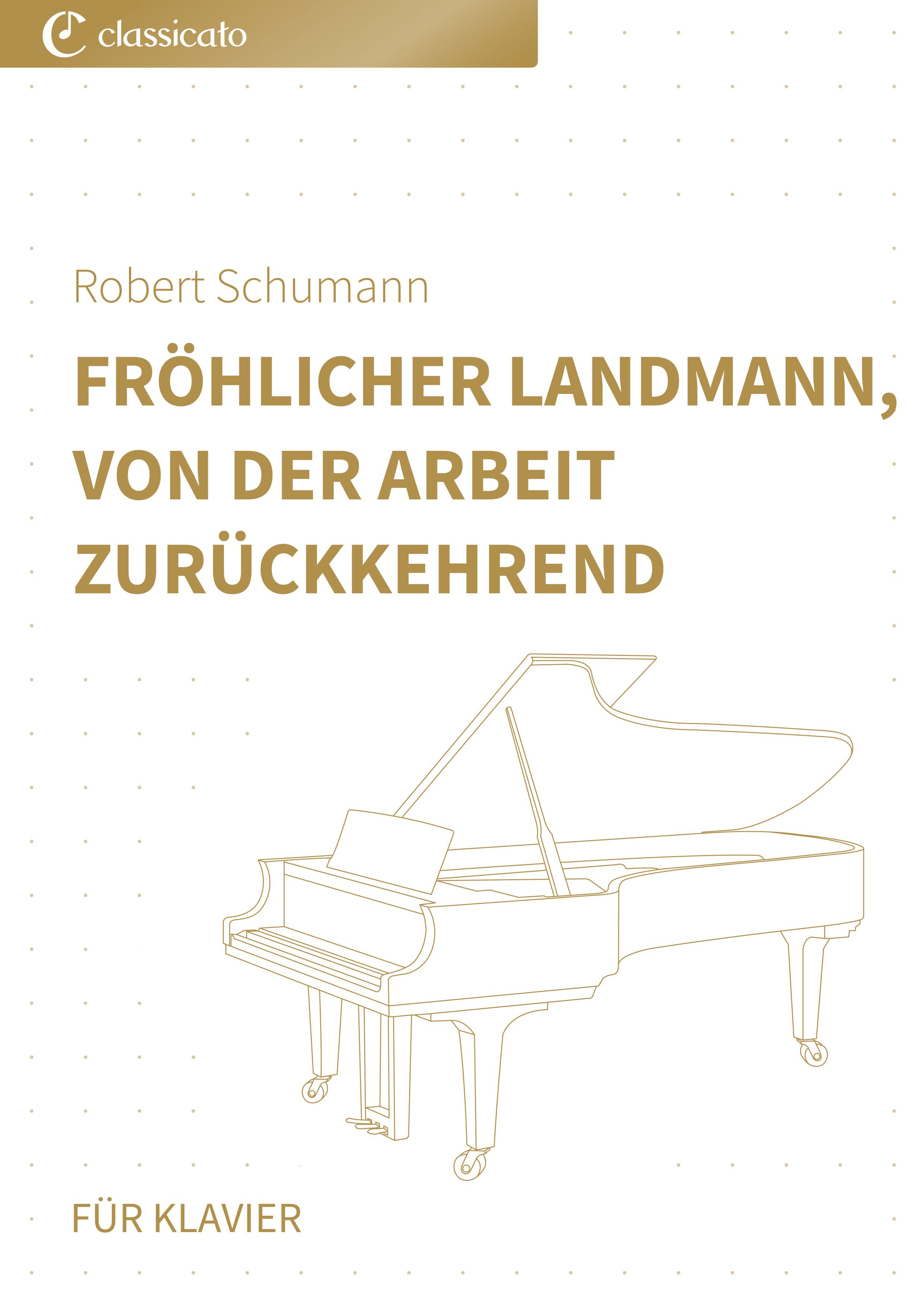 Diese Ausgabe enthält die Klaviernoten zum bekannten Werk "Fröhlicher Landmann, von der Arbeit zurückkehrend", Nr. 10 aus dem "Album für die Jugend op. 68" von Robert Schumann. Dieses kurze Klavierstück ist leicht erlernbar und auch gut für Anfänger geeignet. Geschrieben im 4/4-Takt in F-Dur.