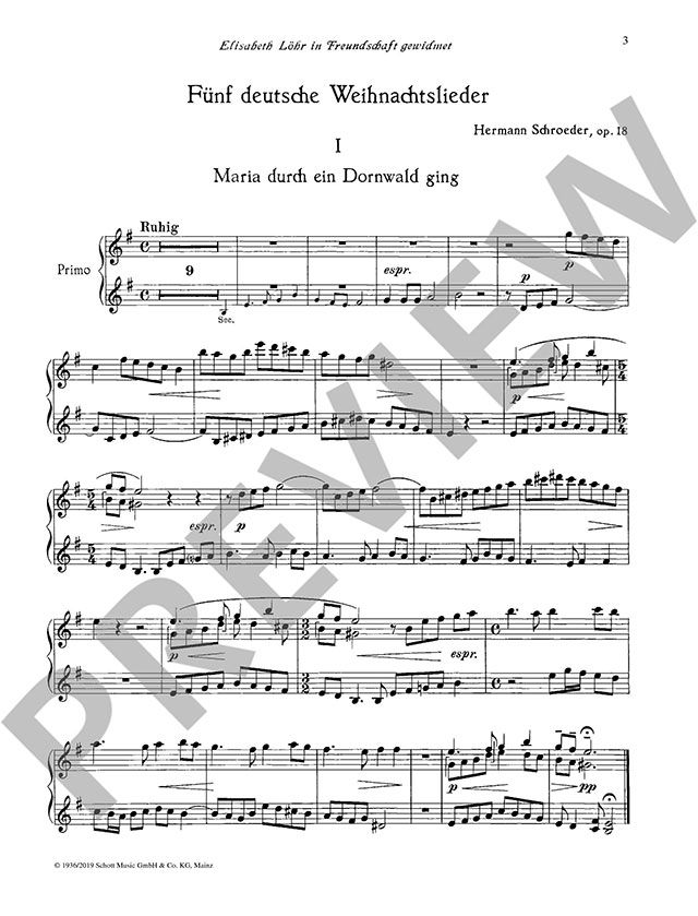 Schroeders 'Fünf deutsche Weihnachtslieder' zählen zum Besten unter den kleinen Sachen, die seit Reger bis zum Erscheinungsjahr 1936 in Deutschland geschrieben wurden. (Georgii, Geschichte der Klaviermusik).