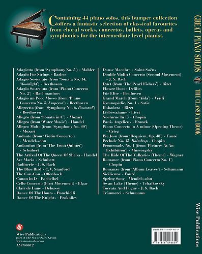 Diese gemischte Songbuch liefert eine Vielzahl an unterschiedlichsten klassischen, arrangiert für den geübten Pianisten. Mit über 40 Klaviersoli aus den größten und beliebtesten Chorwerken, Concertos, Balletts, Opern und Symphonien können Sie Ihre Lieblingsstücke in kürzester Zeit lernen und endlich selbst spielen!