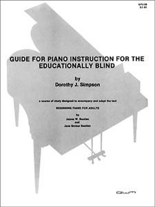 Visually handicapped students will benefit from Dorothy J. Simpson's companion volume, Guide For Piano Instruction For The Educationally Blind. Directly related to Beginning Piano For Adults, this instructive text outlines special teaching approaches such as awareness of keyboard topography, assignments for tape recording, 'piggy-back' playing, and 'sensing.'