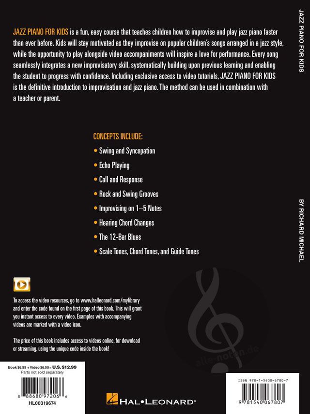 Mit der unterhaltsamen Jazzmethode von Richard Michaels lernen Kinder schnell und leicht zu improvisieren. Bekannte Songs im Jazzstil mit Online-Video-Begleitung fördern gleichzeitig Motivation und improvisatorische Fähigkeiten. Ob zu Hause oder im Unterricht, diese Methode ist auch für Jazzunerfahrene Lehrende und Eltern geeignet.