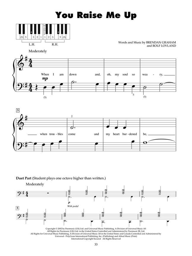Features the Leonard Cohen title-song masterpiece plus nine other soulful favorites, all expertly arranged for very beginners: Amazing Grace / Circle of Life / Don't Stop Believin' / On Eagle's Wings / One Moment in Time / People Got to Be Free / Shower the People / The Wind Beneath My Wings / You Raise Me Up.