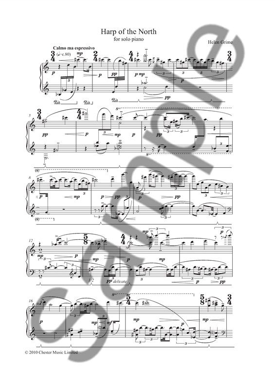 For Solo Piano. Harp of the North was commissioned by Warren Mailley-Smith in November 2004. First performed at the Stratford-upon-Avon Music Festival, October 2005.
