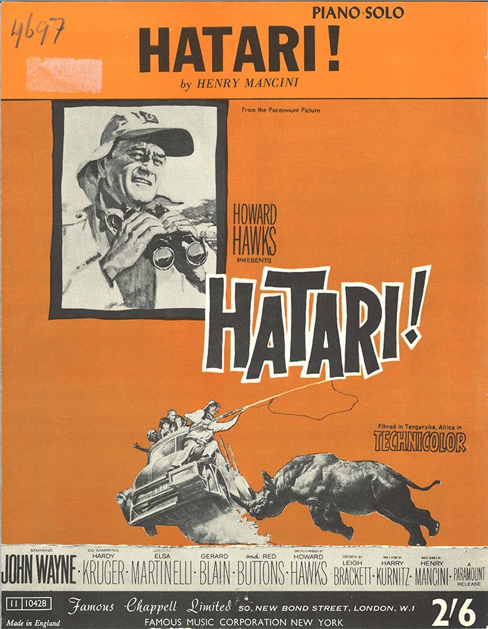 Hatari!, composed by Henry Mancini, from the Paramount Picture 'Hatari!', arranged for piano solo.