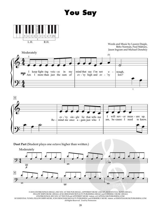 Acht beliebte Hits, arrangiert für Schüler im ersten Studienjahr. Sie verfügen über eintönige Melodielinien, die in einer Position bleiben, was durch ein kleines Tastaturdiagramm am Anfang jedes Liedes angezeigt wird. Jedes Lied enthält auch einen Text und eine schön geschriebene Klavierbegleitung, die von Lehrern, Eltern oder erfahreneren Schülern gespielt werden kann.