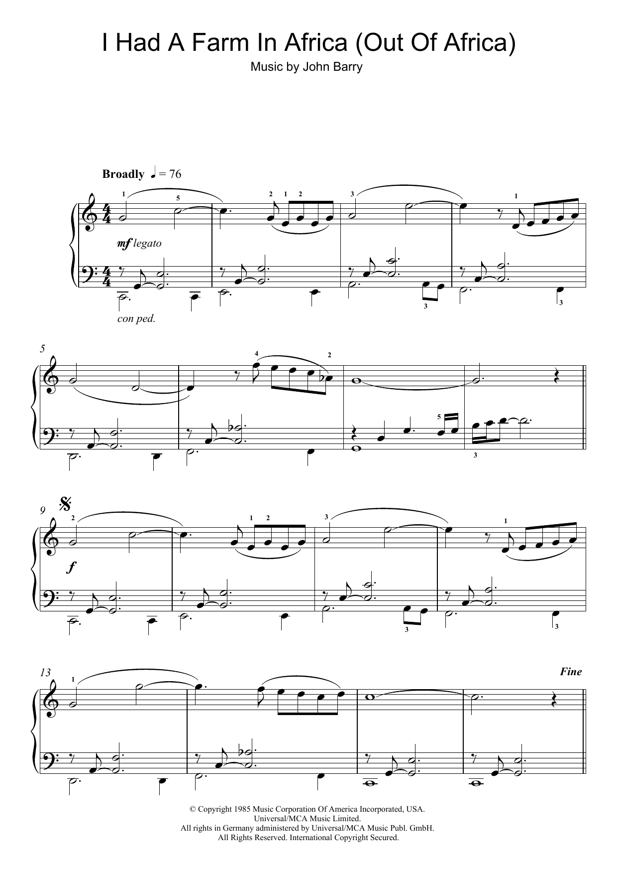 (Main Title from Out Of Africa)