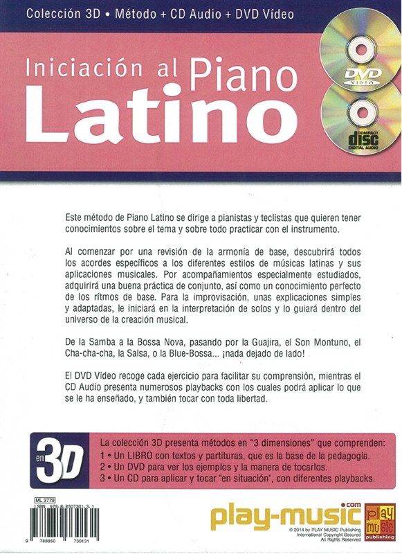 This method has been created for pianists and Keyboard players who want to increase their knowledge of the instrument while playing pieces in the Latin style. Starting with a review of basic harmony, you'll discover all the chords specific to the different styles of Latin music and will learn about their musical application. Using the specially designed accompaniments, you will improve your playing while gaining a good knowledge of basic rhythms and simple and tailored explanations will introduce you to the interpretation of solos.