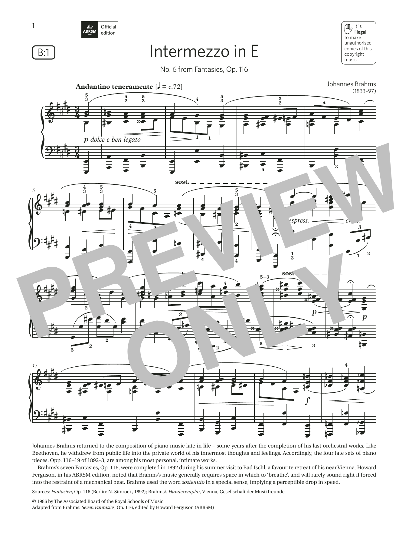 Intermezzo in E (Grade 8, list B1, from the ABRSM Piano Syllabus 2021 & 2022)