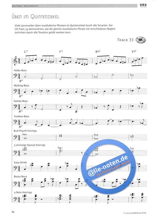 Moehrkes zweites Jazz-Piano-Buch im AMA Verlag enthält kurze, einfach zu spielende Eigenkompositionen des Autors, die den Stilistiken von Jazz-Pianisten wie Oscar Peterson, Erroll Garner, Bill Evans u. a. sehr authentisch nachempfunden sind. Übetipps und Hintergrundinformationen zu den Kompositionen und den jeweiligen Stilistiken wie Swing, Modal, Stride, Fusion u. a. ergänzen die Stücke. 'Jazz Piano Solo Concepts' ist hervorragend geeignet als ergänzende und praxisbezogene Spielliteratur zu Moehrkes Buch 'Voicing Concepts For Jazz Piano'.