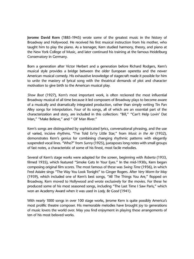 Jerome Kern Classics for Piano Solo Intermediate Level