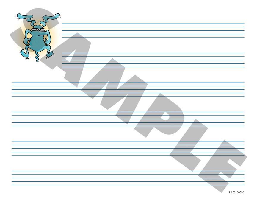 This wide-staff manuscript paper pad features the crazy, colorful creatures from the best-selling John Thompson's Easiest Piano Course series. Characters show up in full color on 32 pages, size 11 inch. x 8-1/2 inch., with six large staves on each page. Includes a music notation guide.