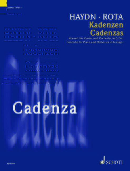 Improvisierte, aber auch komponierte Solokadenzen, wie man sie vom Schluss einer Bravourarie und den Satzschlüsseln von Instrumentalkonzerten kennt, gibt es seit dem späten 16. Jahrhundert. Sie geben dem Interpreten die Gelegenheit zu virtuoser Selbstdarstellung in Form des freien Spiels mit Themen und Motiven des vorangegangen Satzes. Meist beginnen Solokadenzen nach einem Innehalten des Orchesters auf einem Quartsextakkord, bevor der Solist mit dem verzögernden Einschub beginnt und schließlich auf der Dominante, meistens mit einem Triller, das freie Spiel wieder beendet. Waren Solokadenzen ursprünglich vom Komponisten zur Improvisation freigegeben, wurden sie ab Mitte des 19. Jahrhunderts von vielen Komponisten häufig fest fixiert. Maßgeblich hierfür war vor allem der zunehmende Missbrauch, Kadenzen ohne Rücksicht auf Stil und Impetus des Werkes zur reinen Schaustellung losgelöster Virtuosität zu nutzen. So versagt Beethoven dem Pianisten in seinem 5. Klavierkonzert jegliche Freiheit, indem die auskomponierte Kadenz hier zum integralen, verbindlichen Bestandteil des Gesamtwerkes wird. Mit dieser bisher einmaligen Reihe stellt Schott Music Kadenzen zu bekannten Instrumentalkonzerten der Klassik und Romantik vor, komponiert von bedeutenden Tonsetzern und Solisten unserer Zeit. Nino Rota widmete die "Kadenzen zum Klavierkonzert Nr. 4 in G-Dur Hob. XVIII:4" von Joseph Haydn Arturo Benedetii Michelangeli (1920-1995), der sie für das Label EMI einspielte.