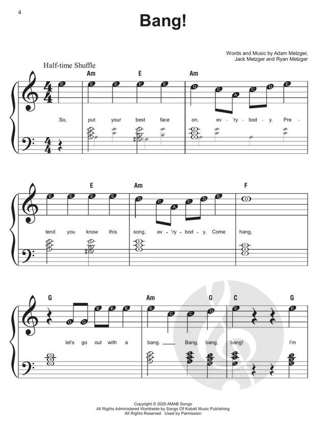 The Instant Piano Songs series will help you play your favorite songs quickly and easily - whether you use one hand or two! Start with the melody in your right hand, then add basic left-hand chords when you're ready. Letter names inside each note speed up the learning process, and optional rhythm patterns take your playing to the next level. Online backing tracks are also included. Stream or download the tracks using the unique codes inside each book, then play along to build confidence and sound like a pro! This edition includes 30 contemporary hits kids love to play and sing, including: Adore You - Cool Kids - Drivers License - How Far I'll Go - A Million Dreams - Ocean Eyes - Shake It Off - What Makes You Beautiful - and more.