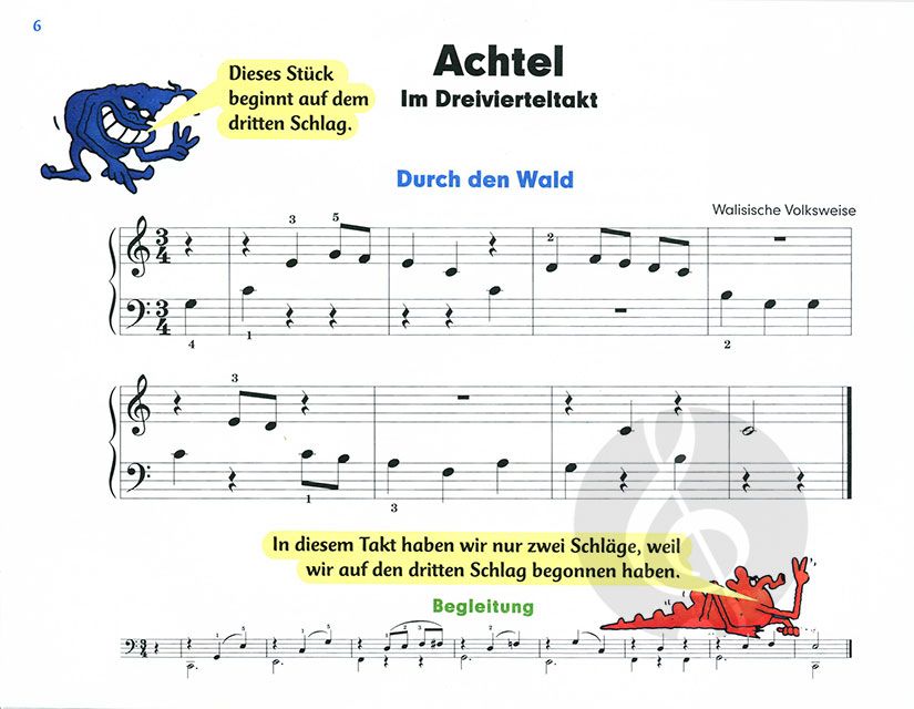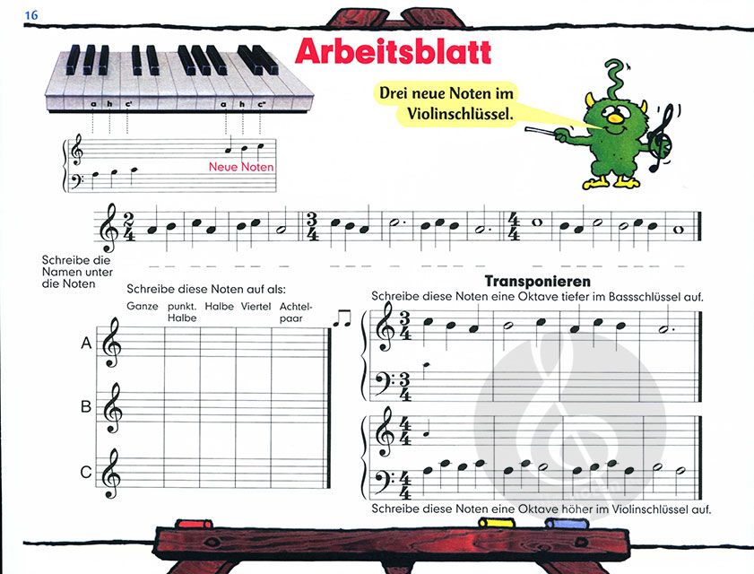 Der zweite Teil der Reihe knüpft nahtlos an das bereits Erlernte aus Band 1 an und erweitert dieses durch neue Noten und Techniken. Fröhliche Figuren begleiten den jungen Schüler durch weitere Übungen, die unter anderem das Vom-Blatt-Spielen weiterhin trainieren sollen.