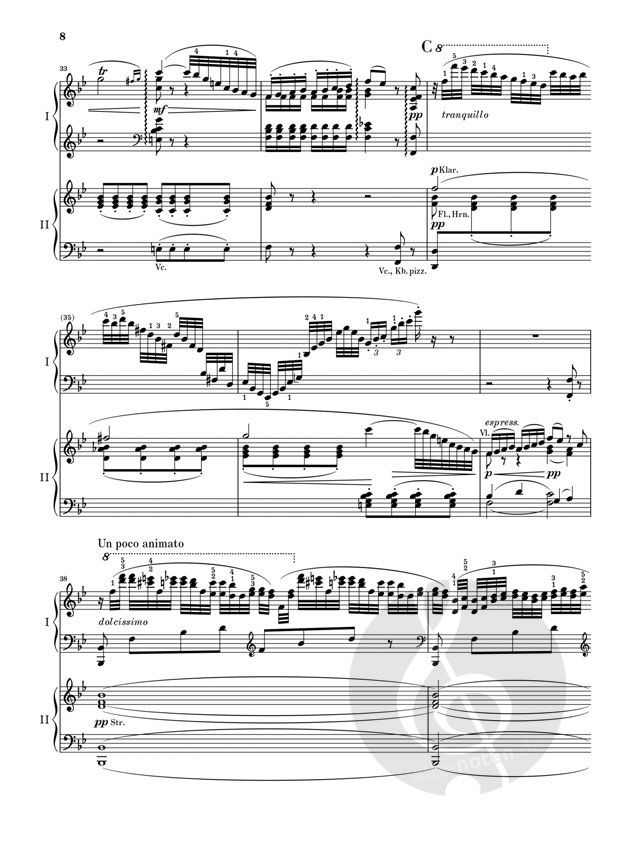 Bei Saint-Saëns' Doppelbegabung als Pianist und Komponist lag es nahe, sich schon früh mit der Gattung Klavierkonzert auseinanderzusetzen. Dem damals in Frankreich vorherrschenden Typus des 'Concerto brillant' erteilte er eine klare Absage: 'Das Solo eines Konzerts muss wie eine dramatische Rolle angelegt und behandelt werden'. Dieses Konzept des 'symphonischen Konzerts' lässt sich sehr gut bei seinem 1868 entstandenen 2. Klavierkonzert nachvollziehen. Der Solopart ist technisch sehr anspruchsvoll und gleichzeitig dicht mit dem Orchester verbunden. Für den Klavierauszug - auf der Basis der vom Komponisten selbst stammenden Fassung für zwei Klaviere - zeichnet Johannes Umbreit verantwortlich, für den Fingersatz der Solopartie Pascal Rogé.