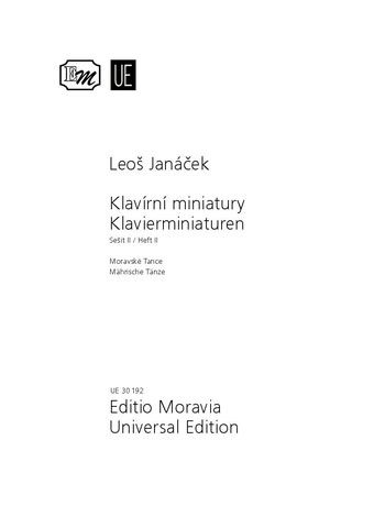 Dank neuer Varianten der Klaviersätze zu den Nummern 1-5 und 8-12 sind die Mährischen Tänze von Janá?ek aus den Jahren 1891-93 in dieser Form erstmals veröffentlicht. Die kurzen Sätze sind einfache Bearbeitungen typischer volkstümlicher Melodien aus allen mährischen Regionen.