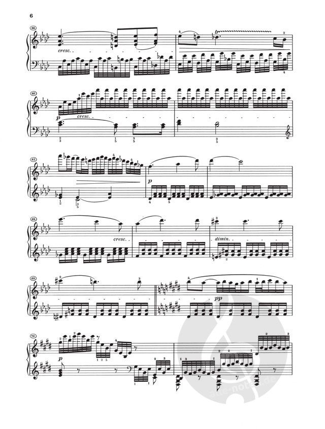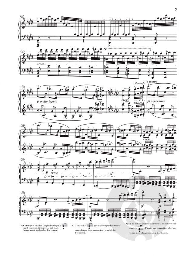 Beethoven berichtete einst, dass er seine letzten drei Klaviersonaten (op. 109, 110, 111) in den Jahren 1820 bis 1822 in einem Zuge niedergeschrieben habe. Tatsächlich bilden sie eine innerlich zusammengehörige Gruppe. Die As-dur-Sonate Nr. 31 op. 110 ist dabei von einer elegisch-schwärmerischen Stimmung geprägt. Im geradezu vokal orientierten Finalsatz erinnern Rezitativ- und Arioso-Figuren daran, dass Beethoven gleichzeitig an seiner berühmten 'Missa Solemnis' arbeitete. Wer sich dieser Sonate in der sorgfältig editierten Henle-Urtextausgabe widmet, kann demonstrieren, wie brillante Technik und innerliche Ausdruckskraft miteinander zu verschmelzen sind.