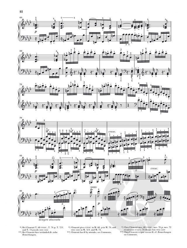 Seit nunmehr 50 Jahren ist Henles Ausgabe der Beethoven-Sonaten anerkannter Standard bei jeder ernsthaften Auseinandersetzung mit diesem 'Neuen Testament' der Klavierliteratur. Mit dem Erscheinen der drei Sonaten op. 31 in überarbeiteten Einzelausgaben möchten wir nun die Messlatte noch um ein entscheidendes Stück höher legen: Kein Geringerer als der Pianist und Dirigent Murray Perahia hat sich erstmals überhaupt überzeugen lassen, seine Fingersätze zu veröffentlichen und als Mitherausgeber seine tiefen Einblicke in die Welt der Quellen jedem Musikinteressierten anzuvertrauen. Der nach allen Regeln der Editionskunst herausgegebene Notentext wird flankiert von einem umfangreichen, informativen Vorwort und detailliertem Bericht zu Quellen und Lesartenproblemen.