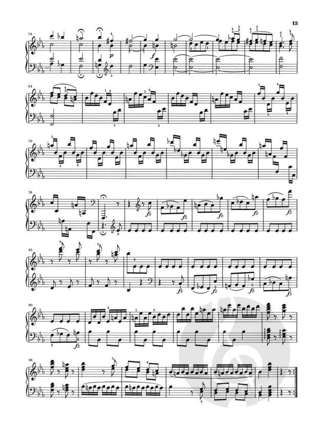 Die Es-dur-Sonate Haydns ist gleich mit zwei großen Musikerinnen und Musikmetropolen verknüpft: Haydn komponierte sie laut Autograph 1794 in London für die dort gefeierte Pianistin Therese Jansen; der 1798 beim Wiener Verlag Artaria erschienene Erstdruck hingegen ist Magdalena von Kurzböck gewidmet, die damals zu den bedeutendsten Pianistinnen der K.-u.-k.-Metropole zählte. Haydn war mit beiden Musikerinnen persönlich bekannt, bei der Hochzeit Therese Jansens mit Gaetano Bartolozzi war er im Mai 1795 sogar Trauzeuge. Die in den frühen Drucken sogenannte 'Grand Sonata' macht ihrem Namen nicht nur in Umfang und technischem Anspruch alle Ehre, sondern auch im Tonfall. Dass dies öffentlichkeitwirksame Musik fürs Konzertpodium ist, stellt der Kopfsatz in seiner imponierenden Eröffnung gleich klar. Das (auch harmonisch nach E-dur!) 'entrückte' Adagio bildet den meditativen Ruhepunkt, bevor ein ungarisch angehauchtes Presto-Finale den Kehraus macht. Die vom Haydn-Spezialisten Georg Feder herausgegebene Urtextausgabe liefert den Notentext der Haydn-Gesamtausgabe, ergänzt mit einem Fingersatz von Hans-Martin Theopold.