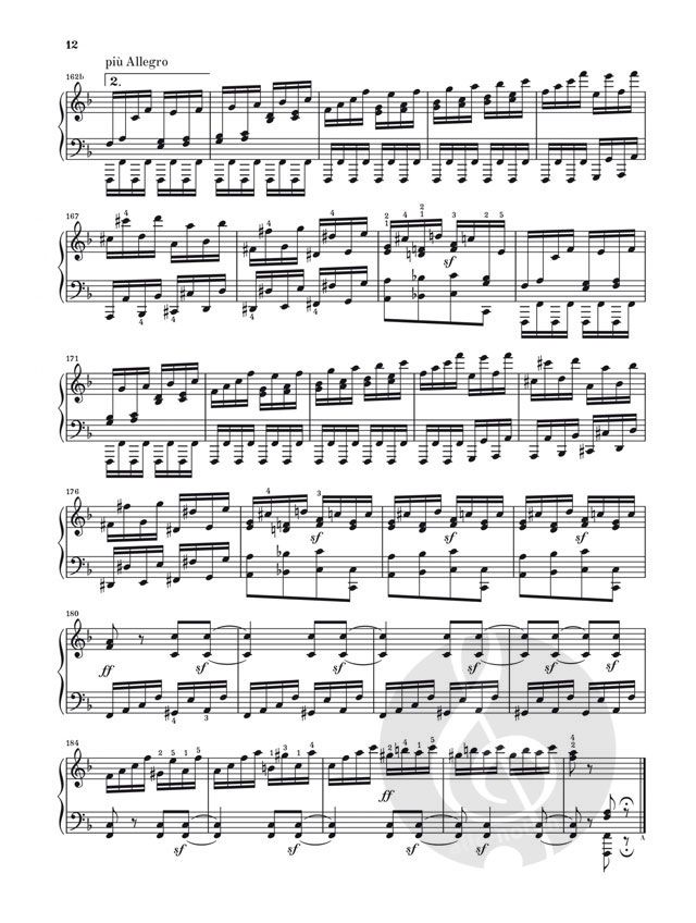 Umrahmt von den beiden berühmten Sonaten Waldstein op. 53 und Appassionata op. 57 führt die F-dur-Sonate op. 54 seit jeher ein Schattendasein. Bedauerlicherweise! In dieser ersten großen zweisätzigen Sonate experimentiert Beethoven mit starken Charakterkontrasten im 1. Satz und einem virtuosen Perpetuum-mobile-Duett im 2. Satz. Die Sonate stellt daher für Pianisten - in der Interpretation ebenso wie bei der Bewältigung der technischen Schwierigkeiten - eine große Herausforderung dar und wurde vielleicht auch deswegen lieber gemieden. In einem Punkt teilt die Sonate das Schicksal vieler früher Werke Beethovens: Es fehlt ein Autograph. Daher können Murray Perahia und Norbert Gertsch in ihrer Neuedition nur auf eine Originalausgabe als Quelle zurückgreifen. Wie immer bei den Neuausgaben der Beethoven-Sonaten bei Henle, steuert Maestro Perahia auch den Fingersatz bei - und einen eigenen Text zur Bedeutung dieser Sonate.